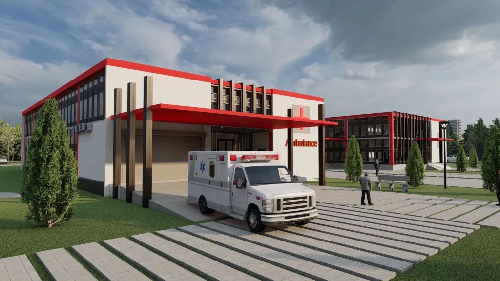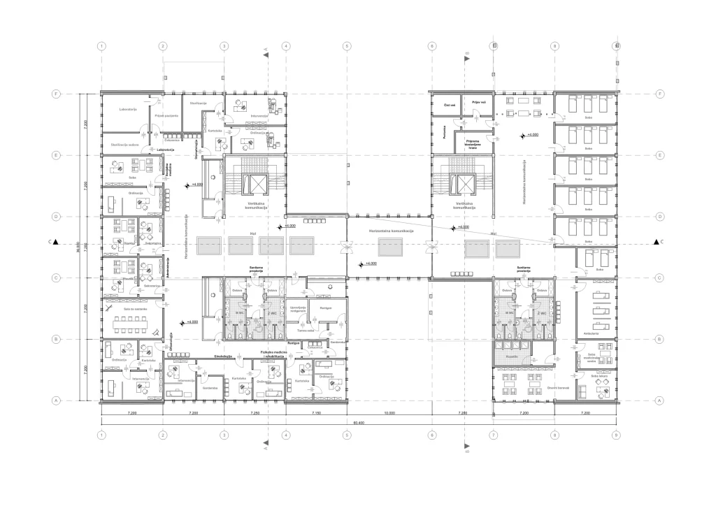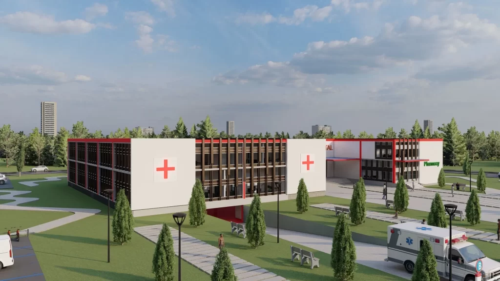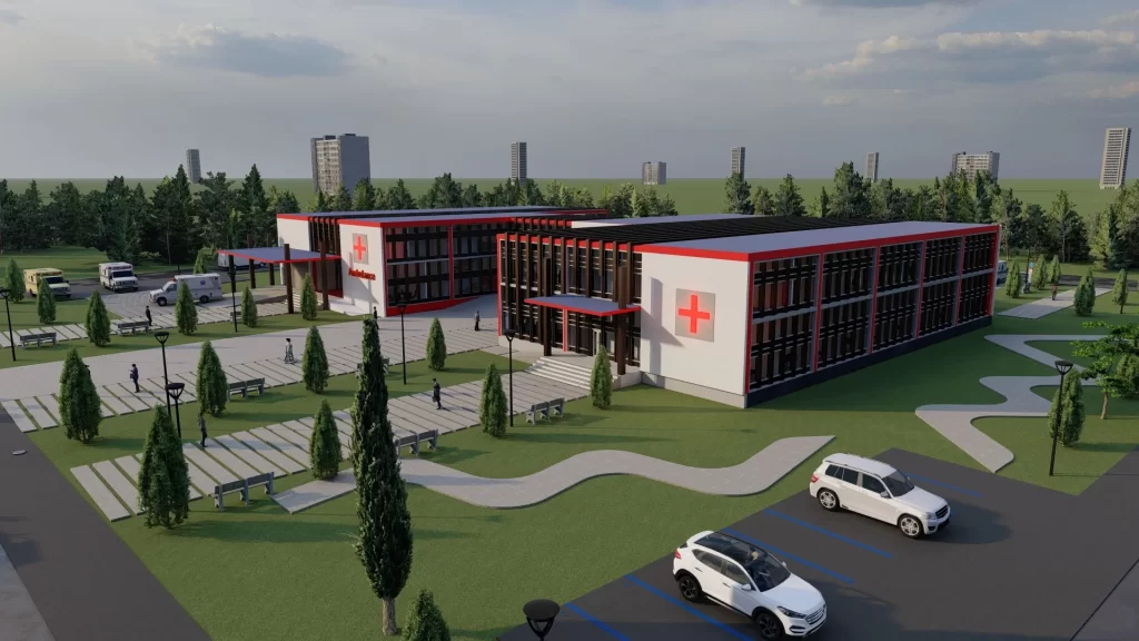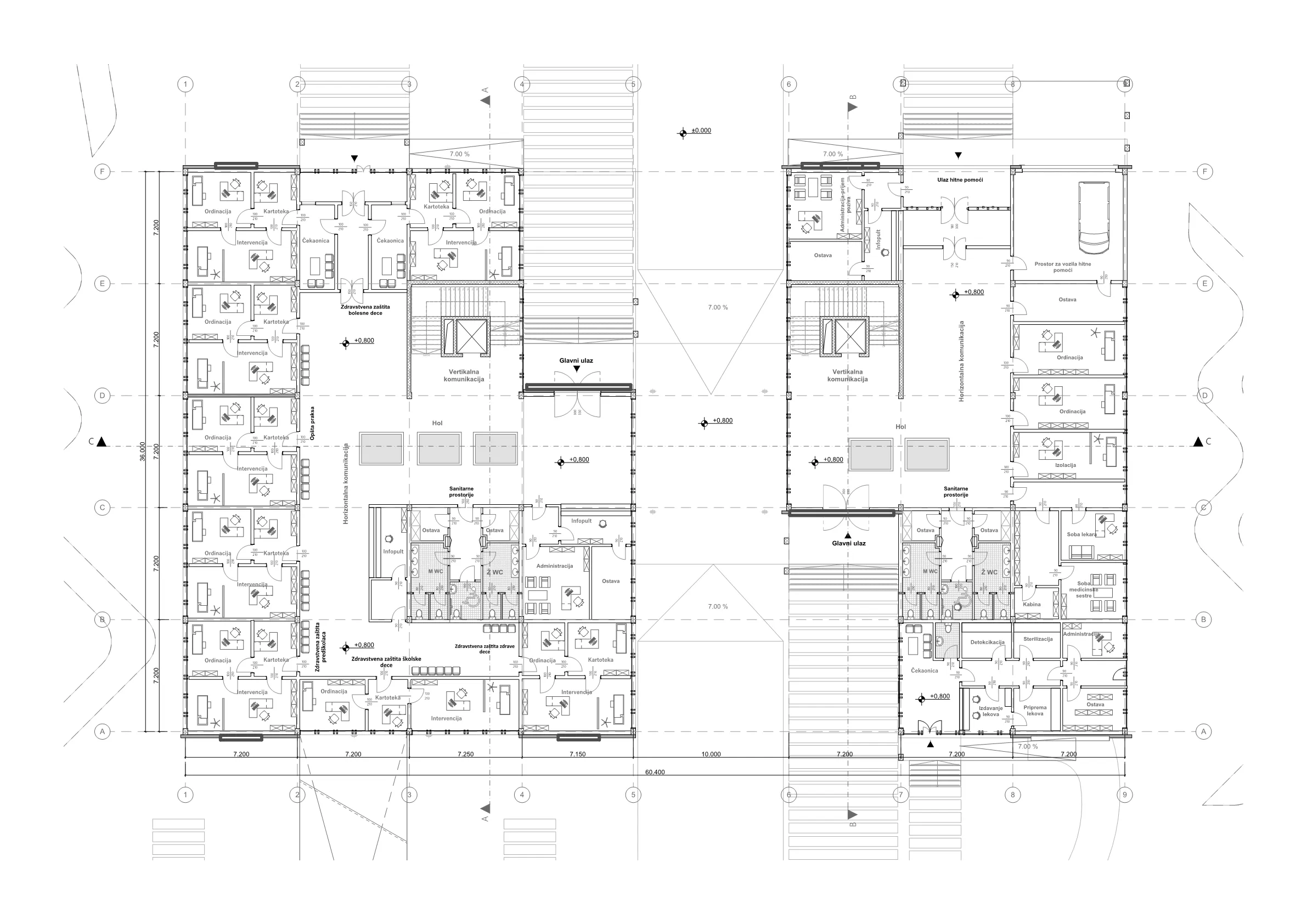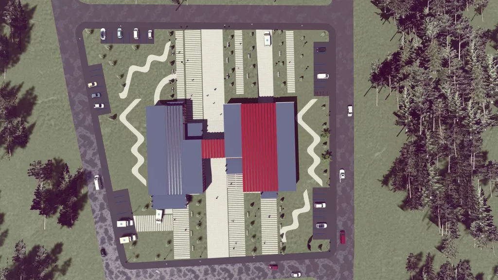 Aufgrund der Anforderungen an die Barrierefreiheit weist das Gebäude maximal P+1 auf.Das Gebäude des Gesundheitszentrums besteht aus zwei Blöcken (Block A – P+1, Block B – Höhe).P+1), verbunden durch einen Verbindungsraum.Das Gebäude ist als freistehendes Gebäude mit Zugangsmöglichkeit von allen vier Seiten konzipiertSeiten.